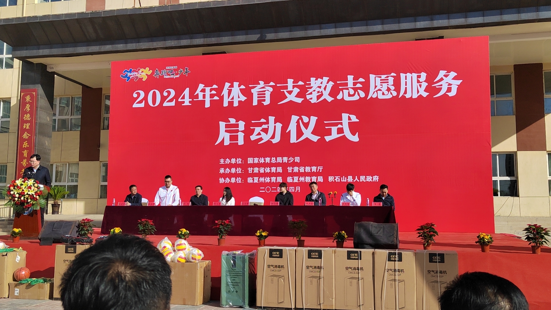 【概要描述】4月23至24日,体育支教志愿服务工作培训会、座谈会、体育明星进校园活动暨2024年体育支教志愿服务工作启动仪式,在甘肃省兰州市城关区东岗西路555号海悦温德姆酒店举行。△ 2024年体育支教志愿服务启动仪式场景 体育总局青少司领导;山西、内蒙古、江西、四川等9省(区)体育局青少处负责同志、具体负责同志和本省牵头高校相关部门负责人;中华全国体育基金会、武汉体育学院相关部门负责同志;北京体育大学、上