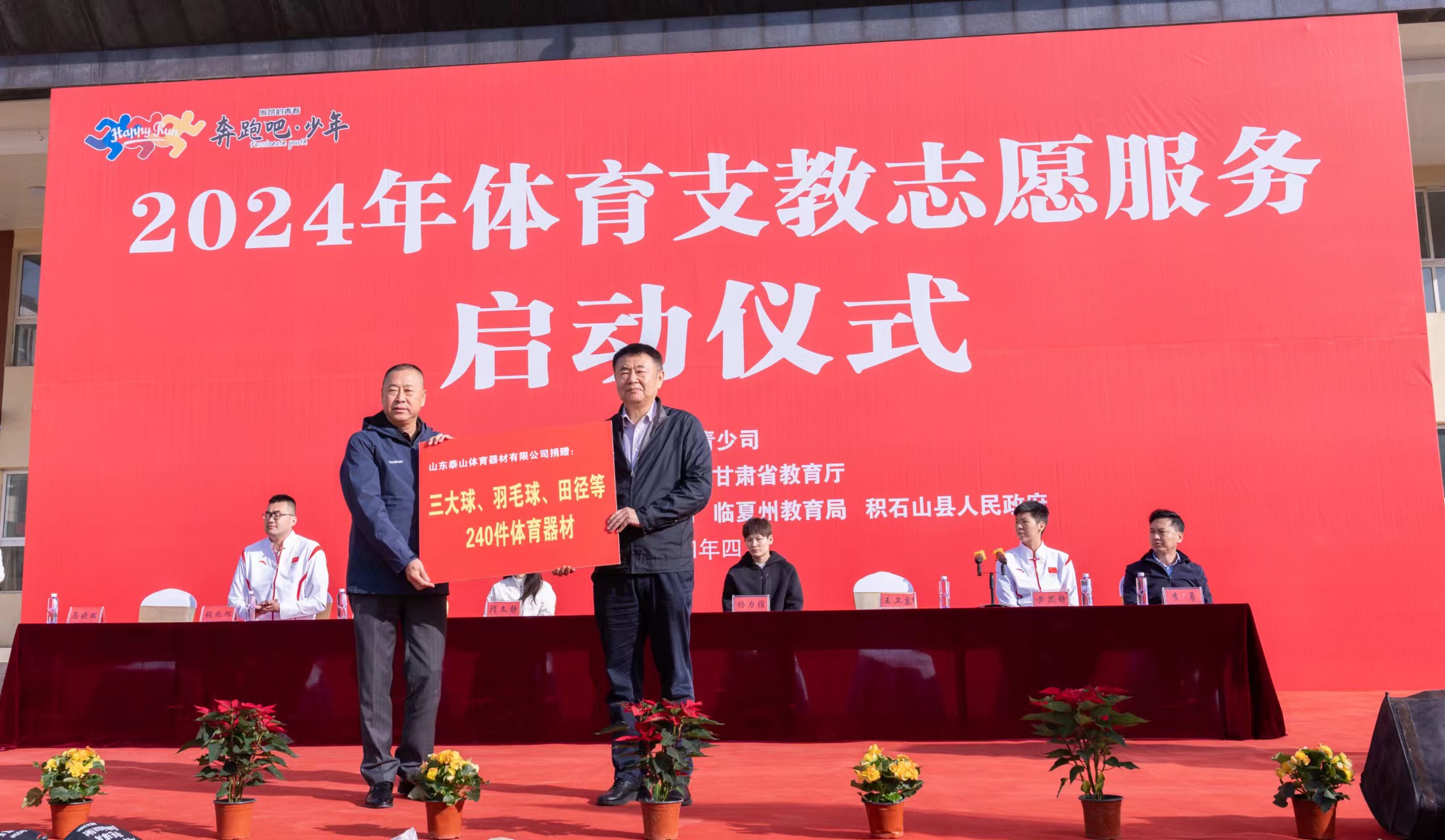 启动仪式上,pg麻将胡了2电子体育捐赠了篮球、排球、足球、羽毛球架(拍)、跳高设备、铅球、跳绳等校园体育器材若干,用实际行动激发当地青少年养成锻炼习惯、提高运动技能、感悟体育魅力、享受运动乐趣,引领积石山县民族中学学生爱上体育、健康成长,实现德智体美劳全面发展。